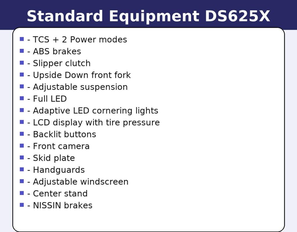 With a price tag of around 134,900 SEK, it offers, just like the DS625X, a lot of motorcycle for your money.