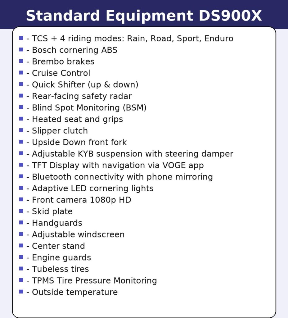 Most features are included as standard, so you don’t need to worry about expensive extras. All of this is wrapped up in a bike that visually resembles much pricier European adventure machines. The DS900X is available in two colours: black and silver.
